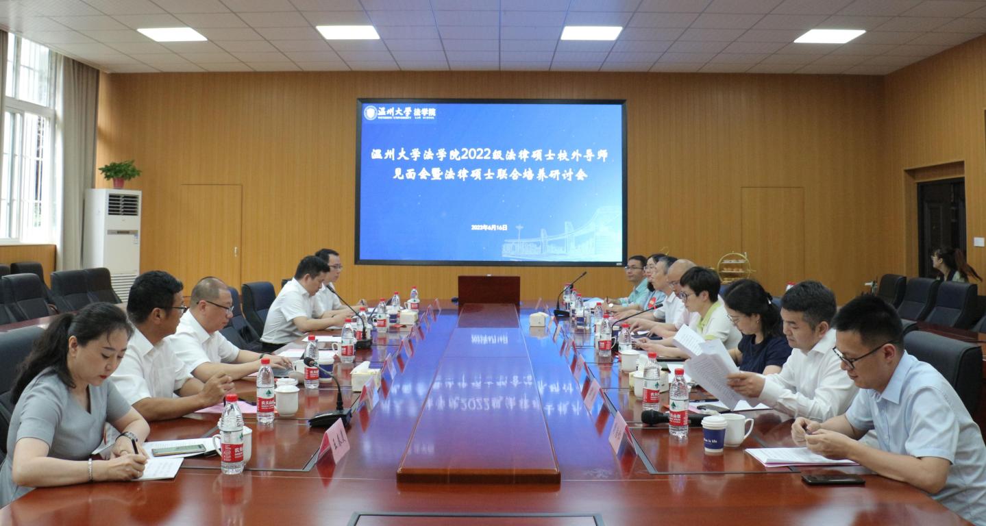 6月16日下午,麻将胡了试玩(中国)官方网站 2022级法律硕士校外导师见面会暨法律硕士联合培养研讨会在麻将胡了试玩 103会议室举行。会议由麻将胡了试玩 副院长周一颜主持,来自温州市两级法院、检察院及律师事务所的法律实务专家受邀莅临会议,麻将胡了试玩 院长王宗正、麻将胡了试玩 党委书记林钦、教师代表谢丽珍、李娟、周小明、周浩仁等老师出席,2022级全体法律硕士研究生参加了见面会。