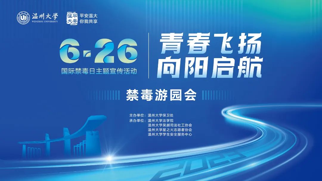为全面营造全民禁毒宣传月活动氛围,助推温州市“全国禁毒示范城市”创建工作,进一步增强在校学生识毒、防毒、拒毒、禁毒意识,在第36个“6·26”国际禁毒日来临之际,温州大学保卫处联合麻将胡了试玩 开展“青春飞扬,向阳启航”——禁毒主题游园会,活动吸引了温州各大高校学生广泛参与。
