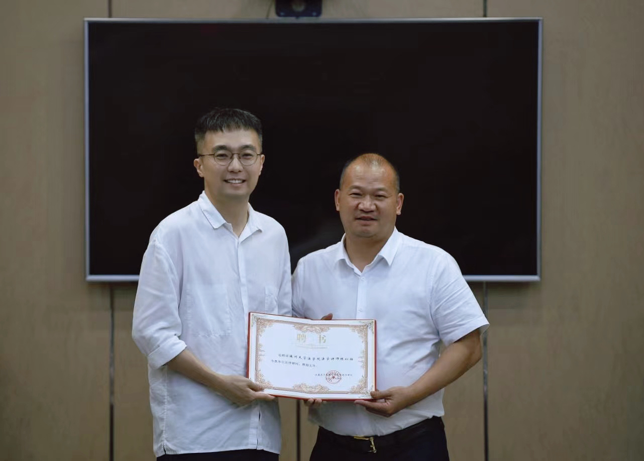 去年7月,温大麻将胡了试玩 陈以拓老师,受市委组织部委派,在法治人才基层挂职项目中,担任瓯北街道副主任,主要负责纠纷化解、企业法务、行政诉讼等工作,并完成组织部相应的调研工作与咨询报告。挂职即将到期,街道领导高度肯定陈老师的工作,并聘任其为街道法律顾问,以新的身份协调并推进温大麻将胡了试玩 与瓯北街道的深入合作。