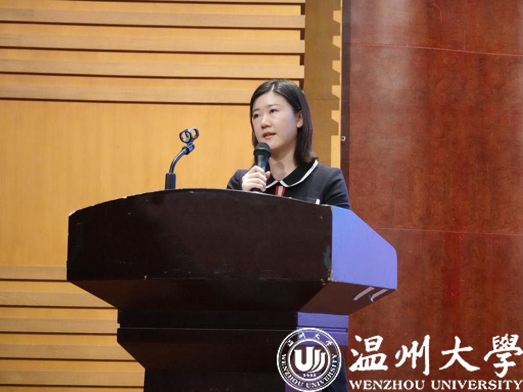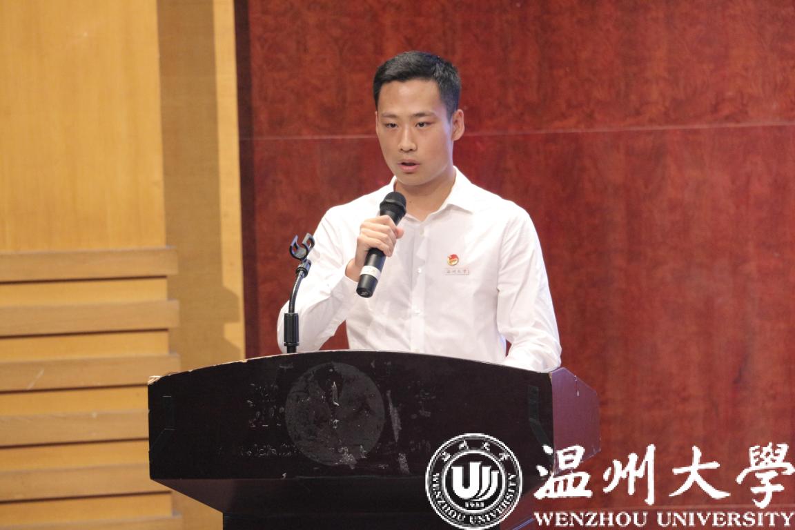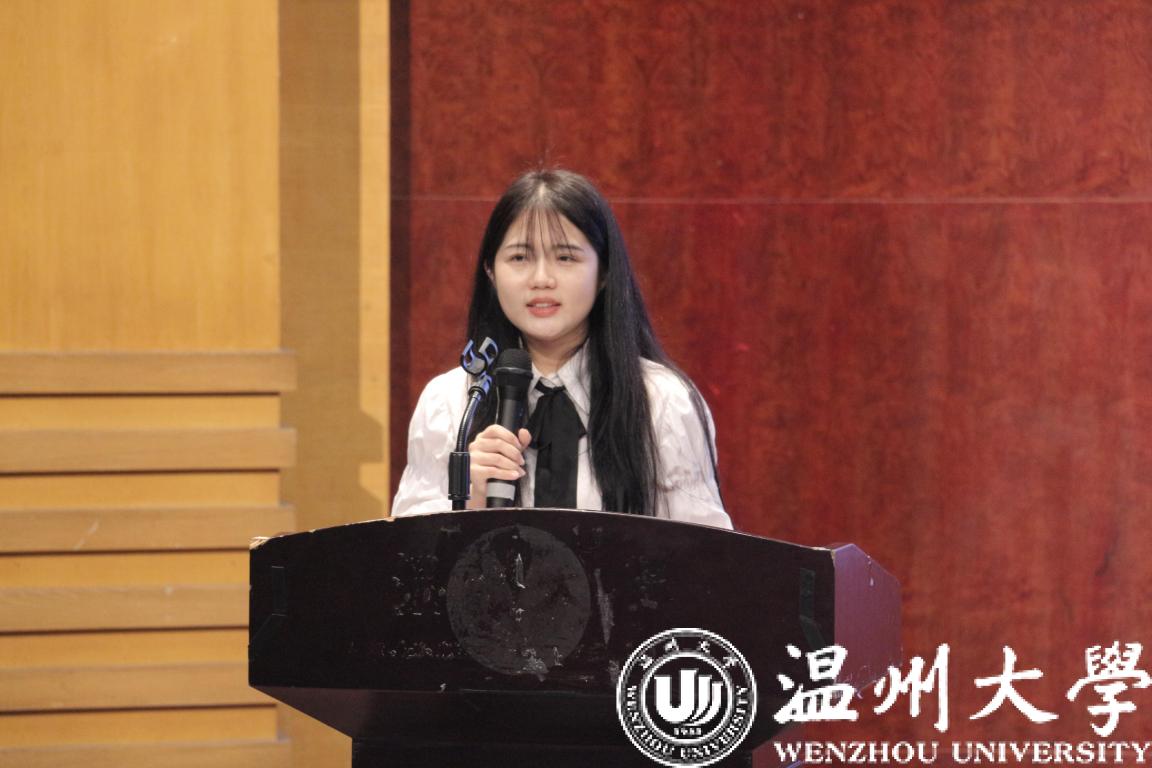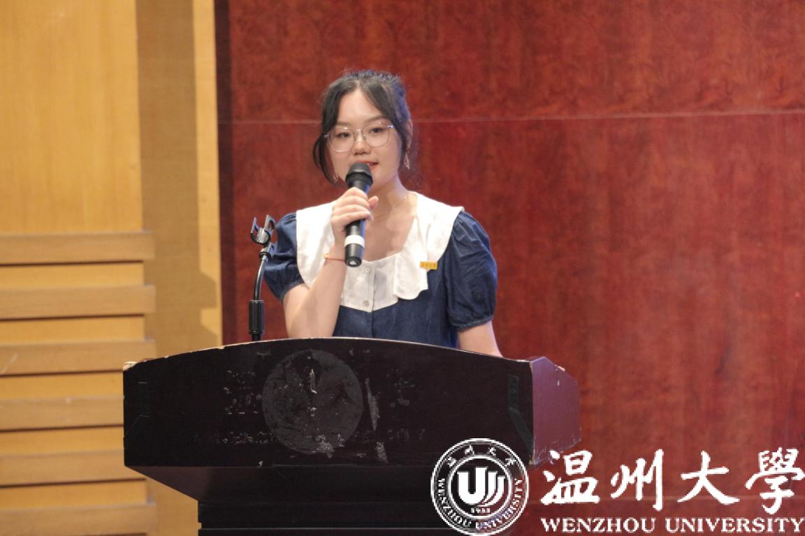 研究生新生代表杨钰莹同学发言。杨钰莹同学讲述了5年在温大麻将胡了试玩 的求学经历,提出了对自己未来漫漫求学路的期望,潜心磨砺、携手同行,共同谱写壮美的青春篇章。