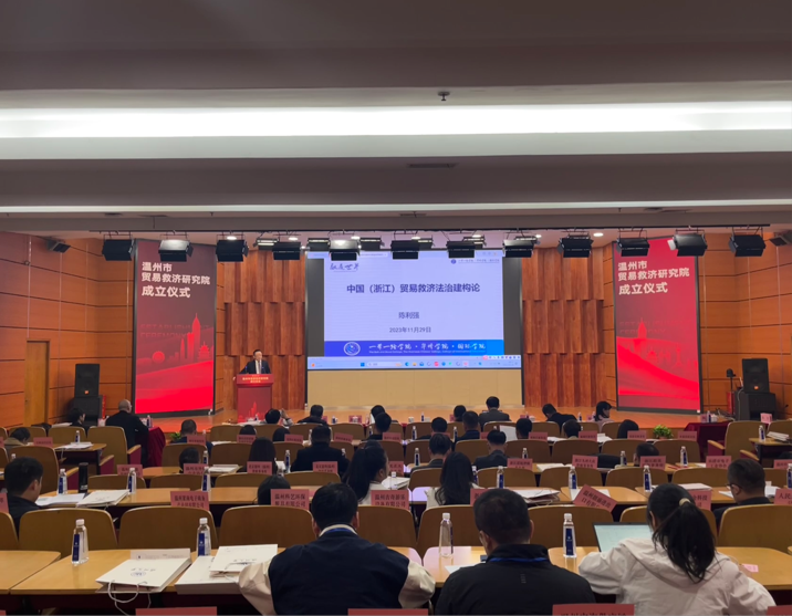 11月29日上午,温州市贸易救济研究院(下称“研究院”)成立仪式在温州大学举行,省市政府机关代表、高校专家学者、涉外律师代表、外贸预警点代表、市重点企业代表等110余人出席成立仪式。据悉,该研究院由温州市商务局与温州大学合作共建,是我市深入贯彻落实习近平总书记关于加强涉外法制建设,营造有利法治条件和外部环境的重要讲话精神,深入实施“地瓜经济”提能升级“一号开放工程”,提升开放风险防控,加快建设贸易强市的最新载体。