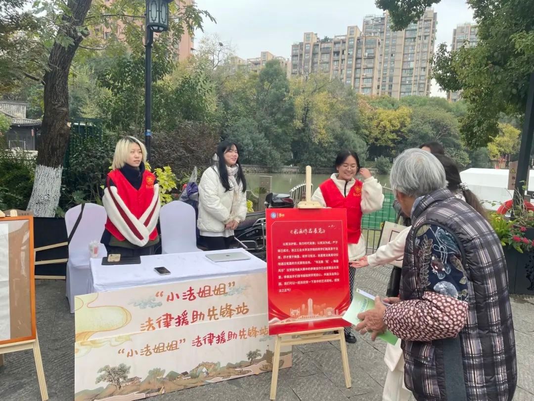 11月30日,在杭州上塘古运河景区,浙江工业大学麻将胡了试玩 “小法姐姐”法律援助志愿者接待站的学生们为市民朋友提供法律援助。