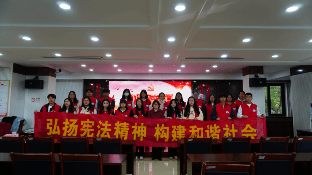 则组织师生志愿者前往杭州钱塘区知行社区,开展“弘扬宪法精神”打卡、法条拼贴诗比赛和宪法知识答题等亲子趣味普法活动。