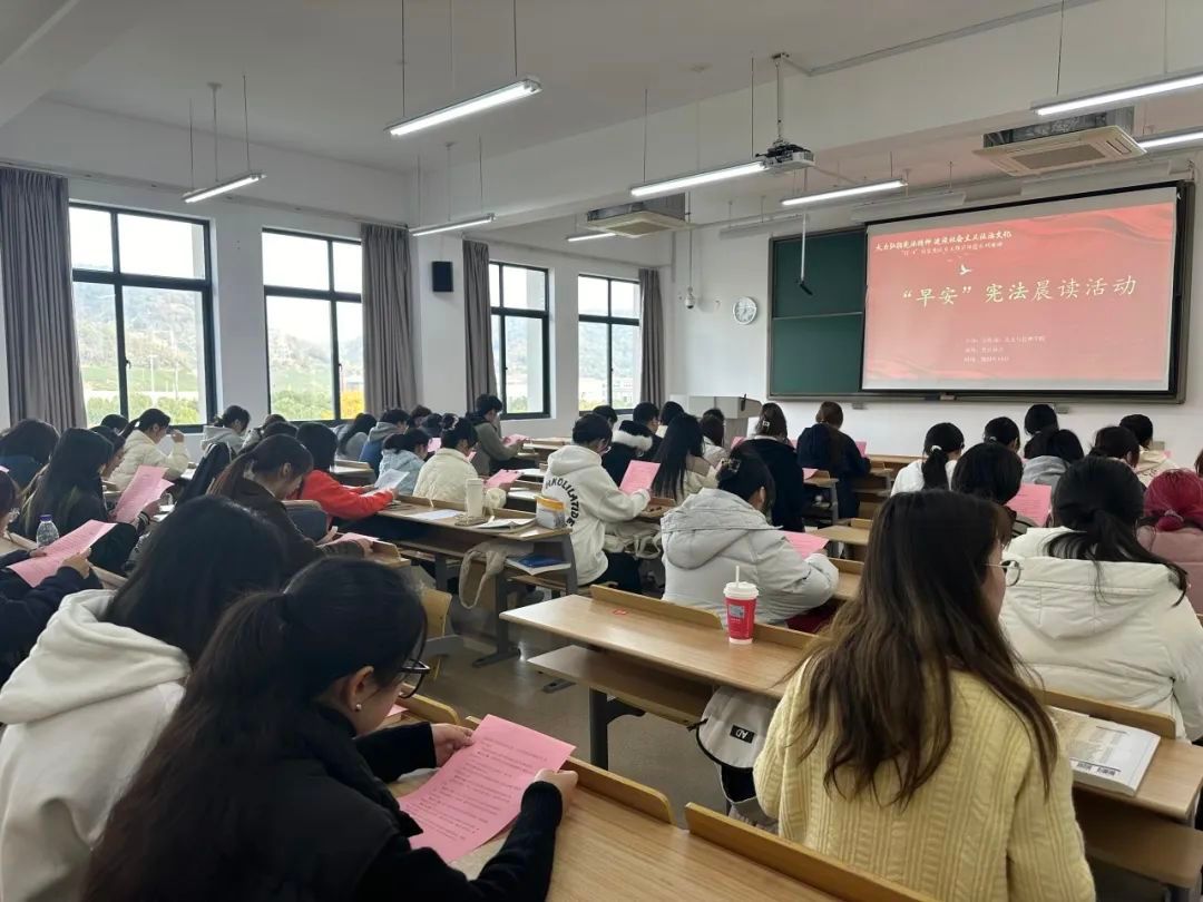 金华职业技术麻将胡了试玩 通过组织一场宪法学习主题班会、完成一次宪法知识线上答题、开展一次宪法晨读活动等“三个一”项目,保障宪法学习全覆盖,使尊崇宪法、遵守宪法和法律成为师生共识。