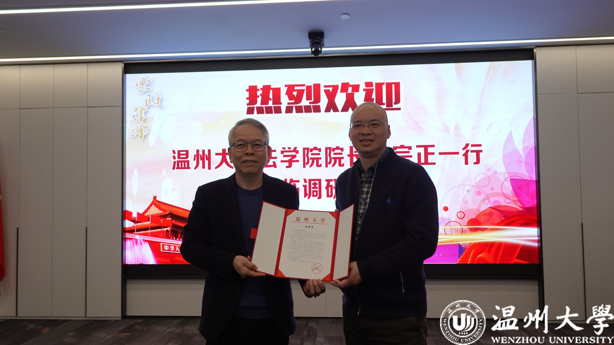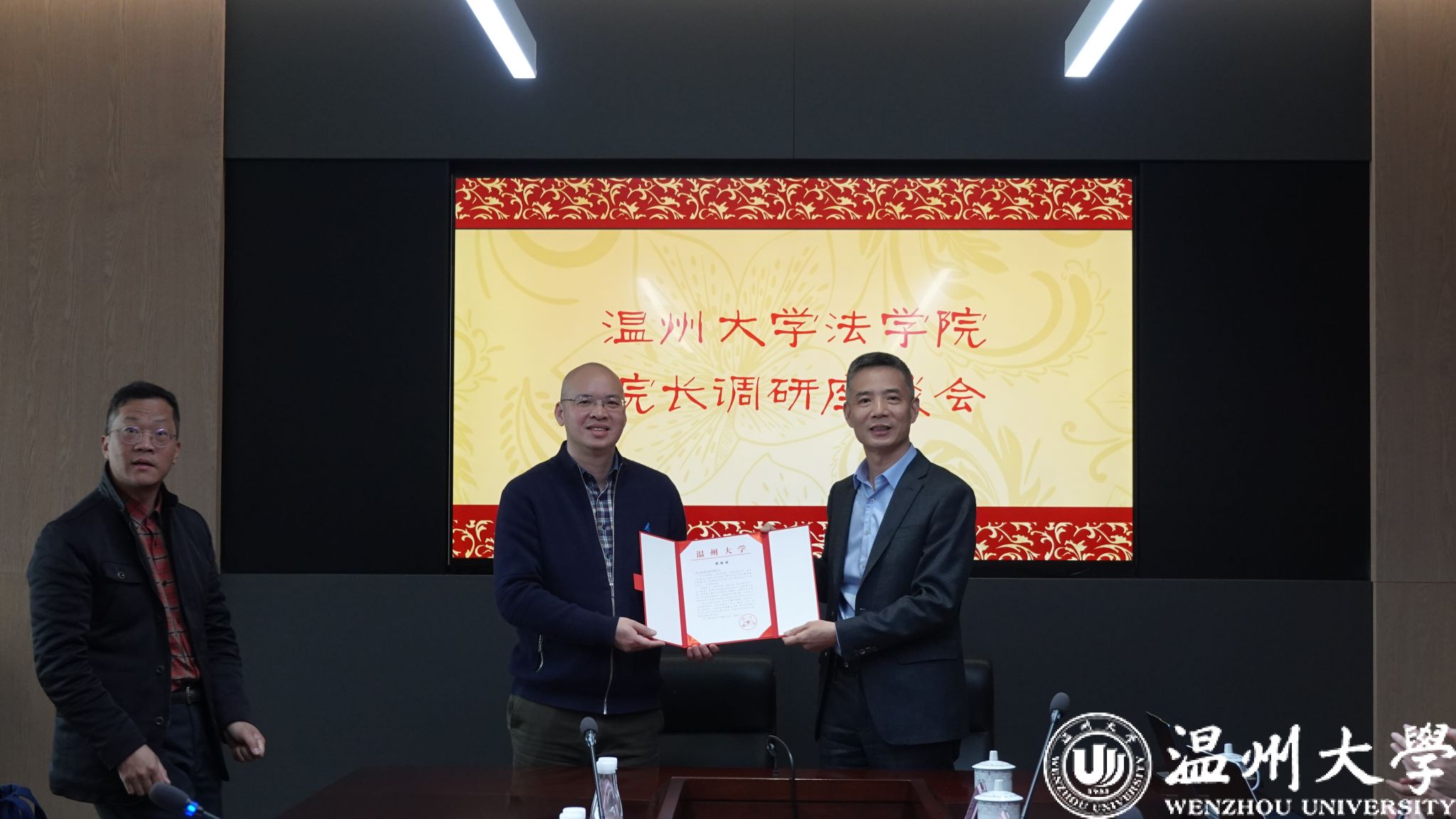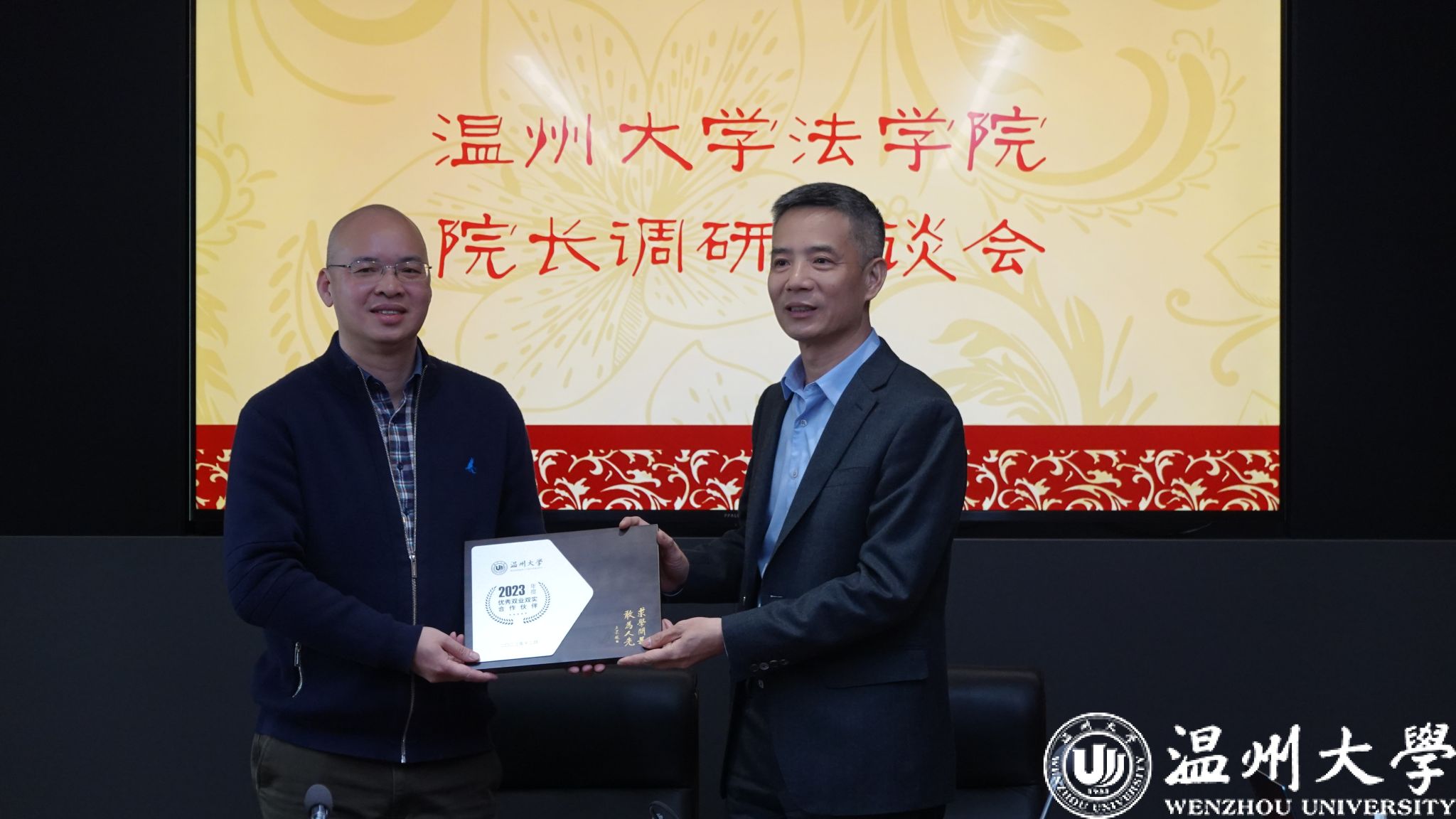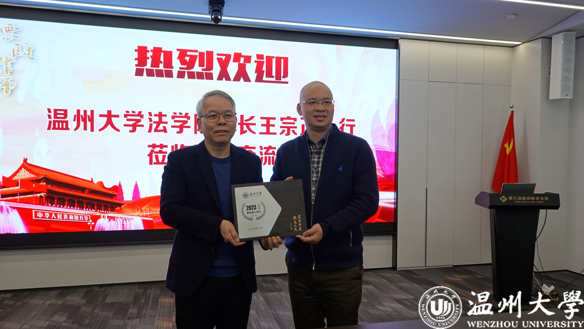 会后,王宗正院长为律所颁发“温州大学2023年度最佳用人单位”纪念证书、《感谢信》和精美纪念品一份。