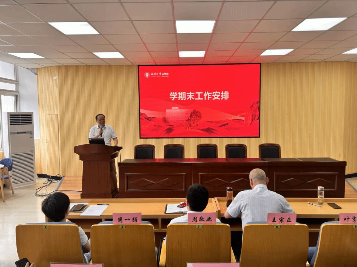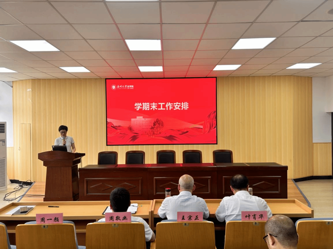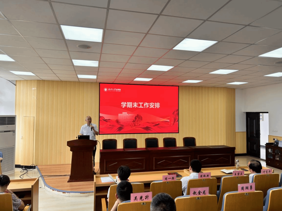 周一颜副院长做学期末教学工作安排。提醒老师注意期末监考纪律,规范批改试卷,并在规定时间内完成成绩录入。同时提醒老师着手准备完善教学大纲,继续做好教学等工作。