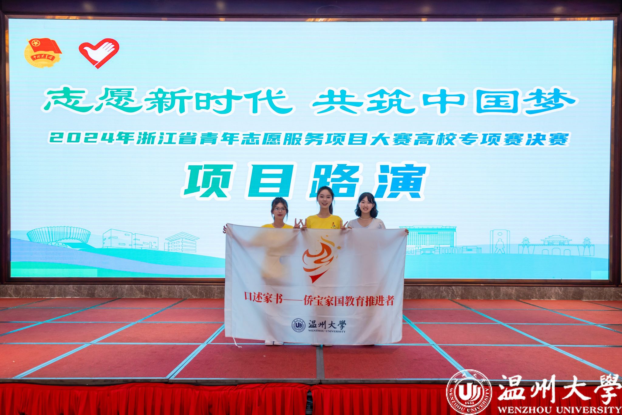 7月5日至7日,由共青团浙江省委、浙江省志愿者协会主办,共青团金华市委、浙江省团校承办,共青团东阳市委协办的2024年浙江省青年志愿服务项目大赛暨青年志愿服务公益创业浙江选拔赛决赛圆满落幕。本次大赛以“志愿新时代 共筑中国梦”为主题,深入贯彻落实党的二十大和二十届二中全会精神和习近平总书记关于志愿服务系列重要指示精神,大力挖掘、培育、推广优秀青年志愿服务项目。麻将胡了试玩(中国)官方网站 《口述家书——侨宝家国教育推进者》项目代表温州大学参赛,经过激烈角逐,最终以全省第一的成绩斩获高校专项赛金奖。