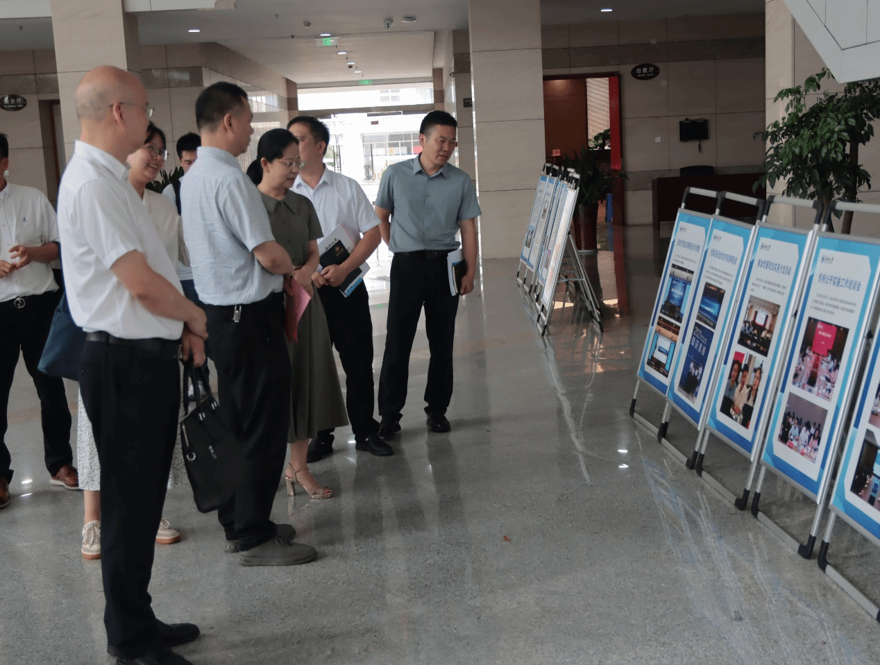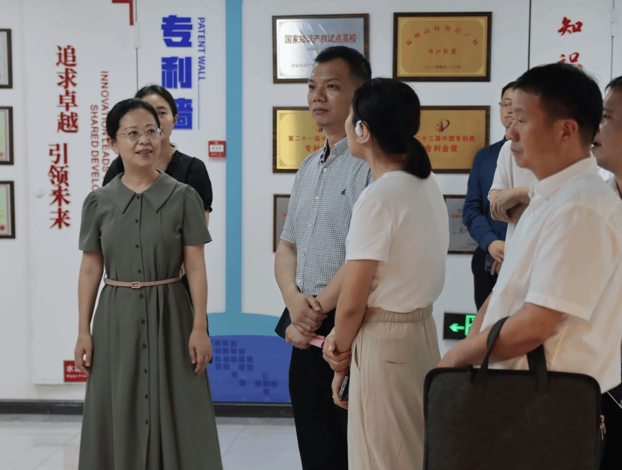 最后,考察组参观了温州大学知识产权基地建设进展的展览区和主体培训场所,实地考察了位于科技综合大楼的温州大学知识产权中心和科技成果转化平台的运营情况。