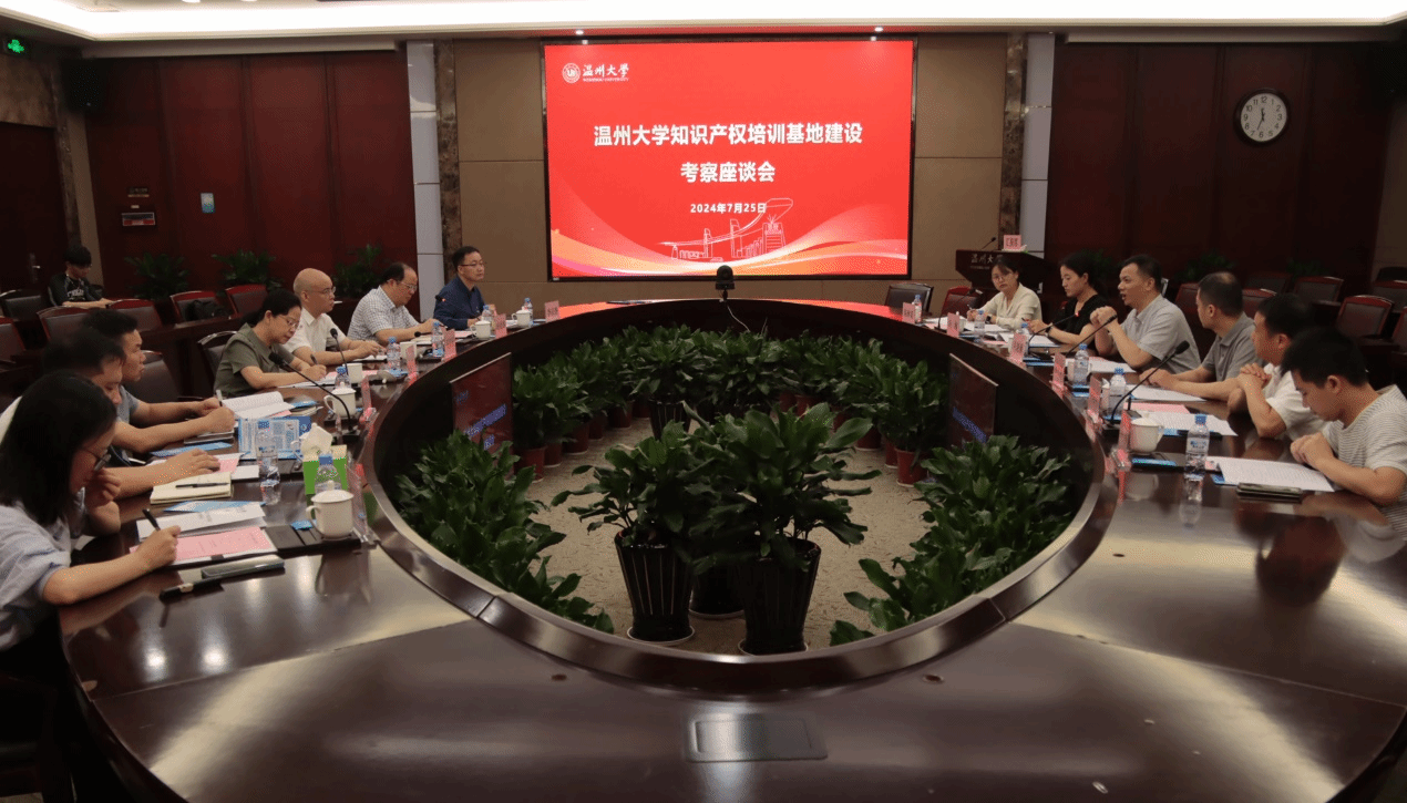 7月25日,浙江省市场监管局知识产权发展处副处长吴晓巍率考察组莅临温州大学,考察我校知识产权培训基地建设情况。温州市市场监管局总工程师陈兴誉、知识产权发展处处长林晓利一行陪同;温州大学副校长刘玉侠、麻将胡了试玩 院长王宗正、麻将胡了试玩 党委书记周敬业、科技处副处长胡悦等我方7人出席考察座谈会。座谈会由麻将胡了试玩 副院长叶肖华教授主持。