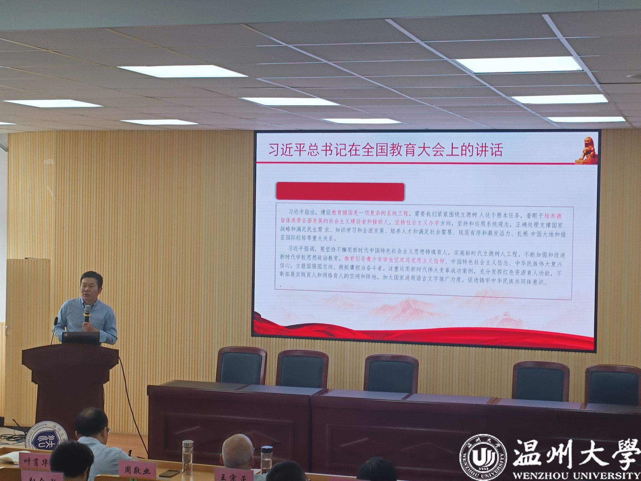会上,周敬业书记带领大家学习习近平总书记在全国教育大会上的重要讲话和全国教育大会精神。会议强调要紧紧围绕立德树人根本任务,朝着建成教育强国战略目标扎实迈进。同时,还传达省委十五届五次全会与市委十三届六次全会精神,全面学习贯彻党的二十届三中全会精神,进一步全面深化改革,为在奋进中国式现代化新征程上,谱写新篇章。
