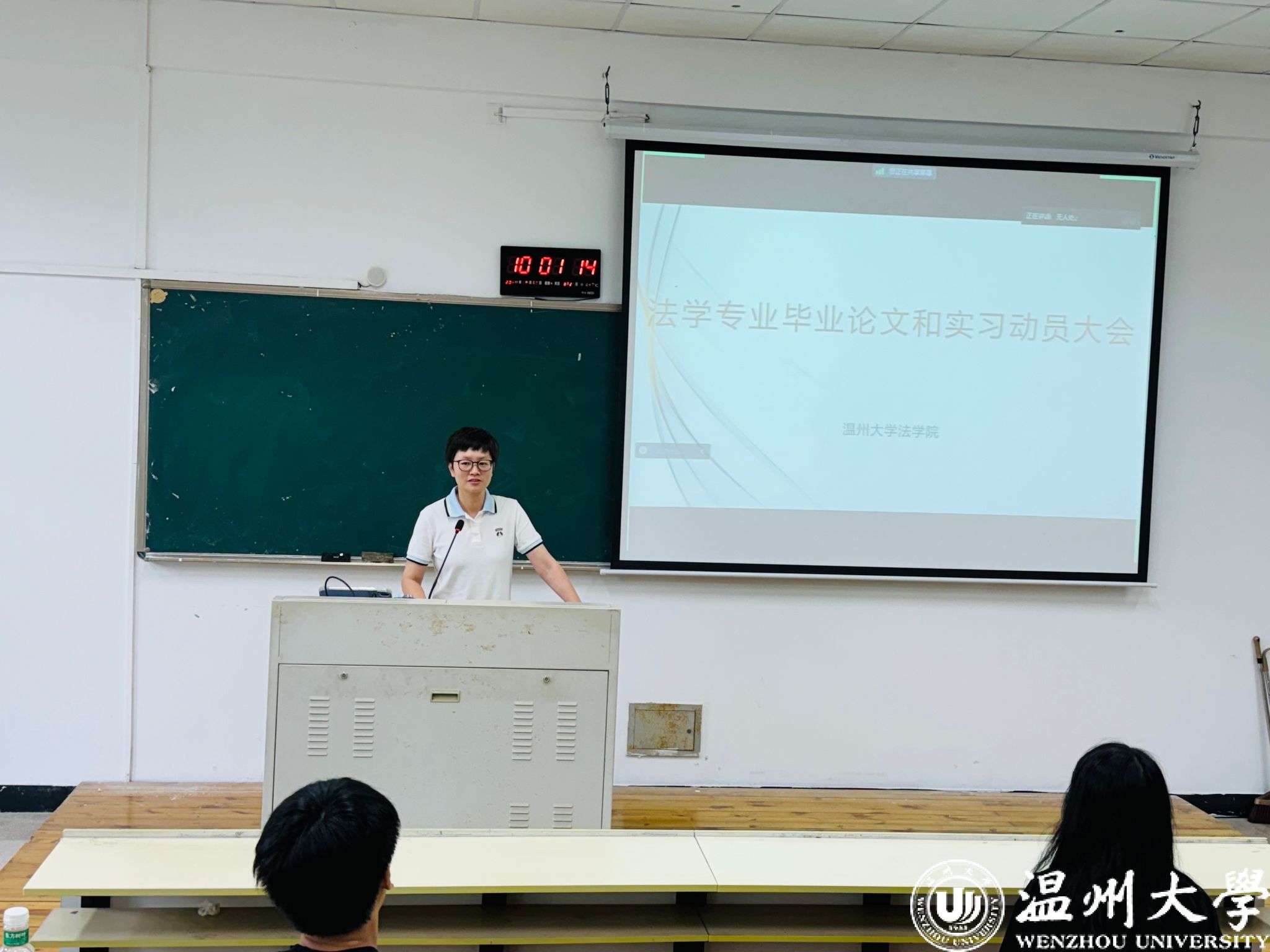 2024年9月27日上午,麻将胡了试玩 法学专业本科毕业论文和实习动员大会在北2-201教室和腾讯会议,通过线上与线下相结合的方式顺利召开。副院长周一颜副教授和法学专业毕业年级全体同学共计一百余人参与本次动员大会,大会由实践教学中心副主任严磊主持。