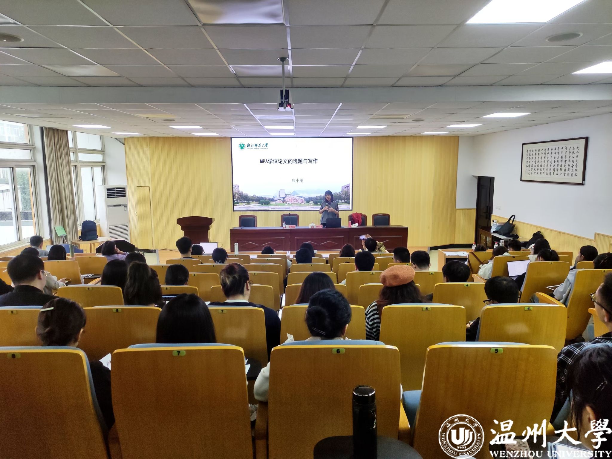 10月26号上午,浙江师范大学教授、硕士生导师,浙江师范大学公共管理学一级学科负责人,浙江省公共管理学会副会长、浙江省中青年学科带头人应小丽教授在麻将胡了试玩 301会议室为麻将胡了试玩(中国)官方网站 师生带来题为《MPA学位论文的选题与写作》的讲座。麻将胡了试玩 MPA学位点负责人付翠莲教授主持讲座,麻将胡了试玩 教师和MPA专业学生八十余人到场学习。