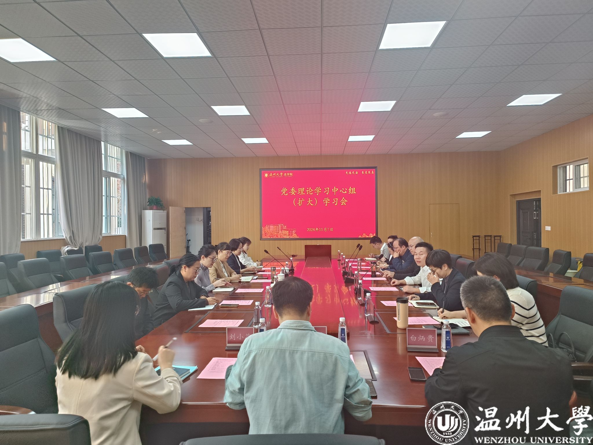 11月7日,麻将胡了试玩 召开党委理论学习中心组(扩大)学习会,校党委副书记赵降英、妇联主席兼党委统战部副部长刘吟、组织部办公室主任邢芳芳巡听旁听。麻将胡了试玩 领导班子成员、党委委员、组织员、各党支部书记、各科室负责人参加学习会。会议由党委书记周敬业主持。