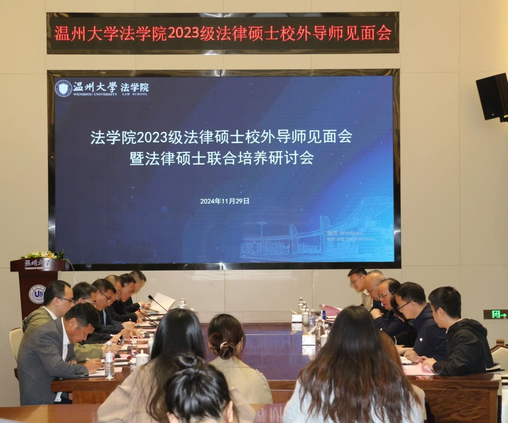 11月29日下午,麻将胡了试玩(中国)官方网站 在科综楼305学术报告厅召开2023级法律硕士校外导师见面会暨法律硕士联合培养研讨会。会议由麻将胡了试玩 副院长叶肖华主持,来自温州市两级法院、检察院及律师事务所的法律实务专家受邀莅临会议,麻将胡了试玩 院长王宗正、法律硕士学位点负责人吴光升、实习基地负责人谢丽珍、周浩仁、李京普等老师出席,2023级全体法律硕士研究生参加了本次见面会。