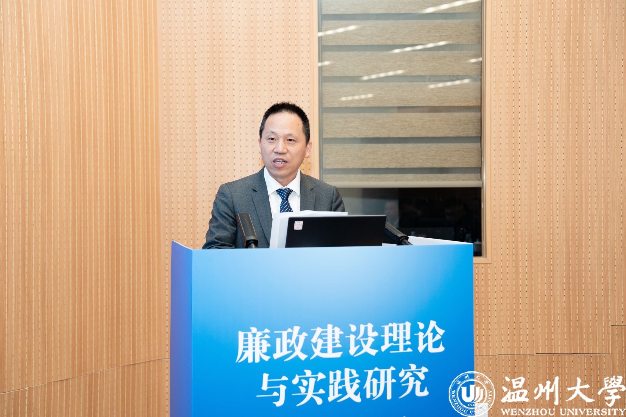 为了深入推进新时代廉政建设理论与实践创新,推动理论与实践的双向赋能,11月30日上午,“廉政建设理论与实践研究”学术研讨会在温州大学隆重举行。温州大学副校长、党委委员王舜,温州大学党委委员、纪委书记、省监委驻温大监察专员李都金,温州市纪委副书记、市监委副主任张宏琴,温州市社科联党组成员、副主席、市社科院副院长叶雪影等领导出席研讨会。