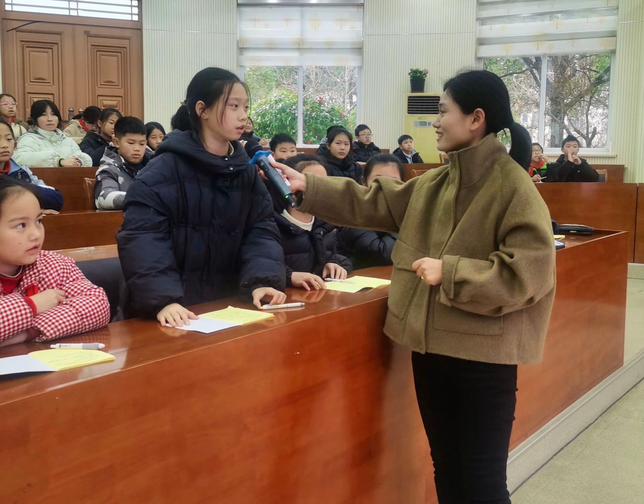 嵊州市剡山小学将法治课堂“搬”进专业法庭。活动现场,同学们迅速转换角色,从“书记员”宣布开庭、“审判员”庄重就位,到“公诉人”义正词严指控“被告人”破坏校园消防设施、涉嫌危害公共安全罪,再到“辩护人”恳切求情,每个环节都尽显专业。激烈法庭辩论、审慎合议庭评议后,“判决”落下,同学们“沉浸式”感受司法公正全过程