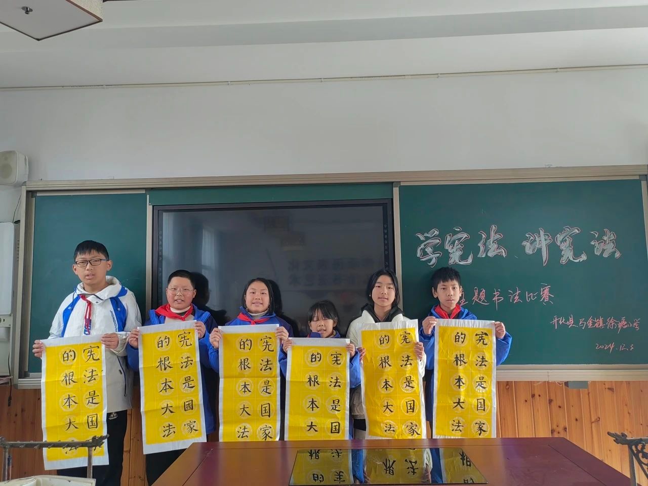 开化县马金镇徐塘小学开展了“学宪法 讲宪法”主题书法比赛,孩子们挥毫泼墨,用手中的笔书写对宪法的崇高敬意。
