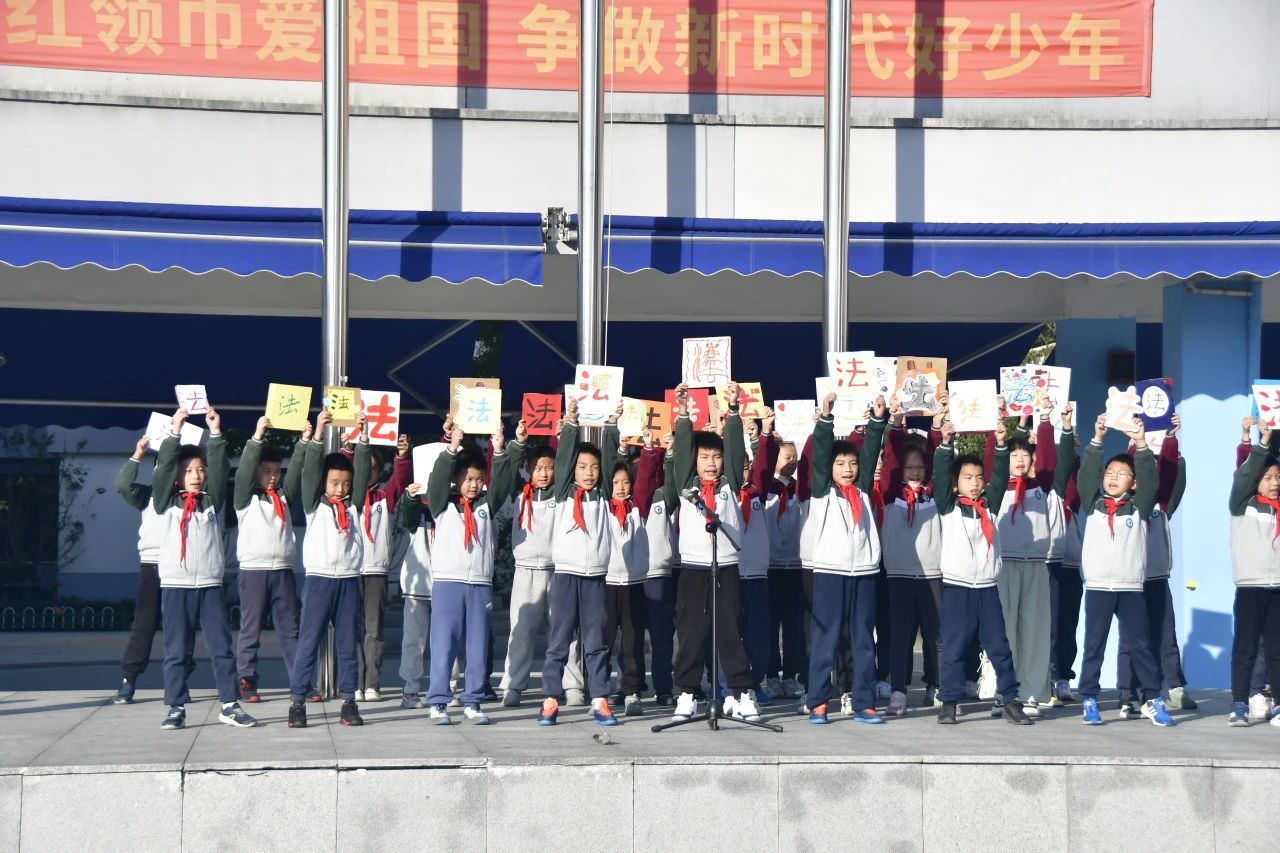 杭州市嘉绿苑小学教育集团组织开展“宣法·学法·践法”主题活动,晨会上队员代表们唱响“宪法之声”,精彩生动的主题展演《成长在宪法的阳光下》鼓励着全校师生增强宪法意识和法治观念。