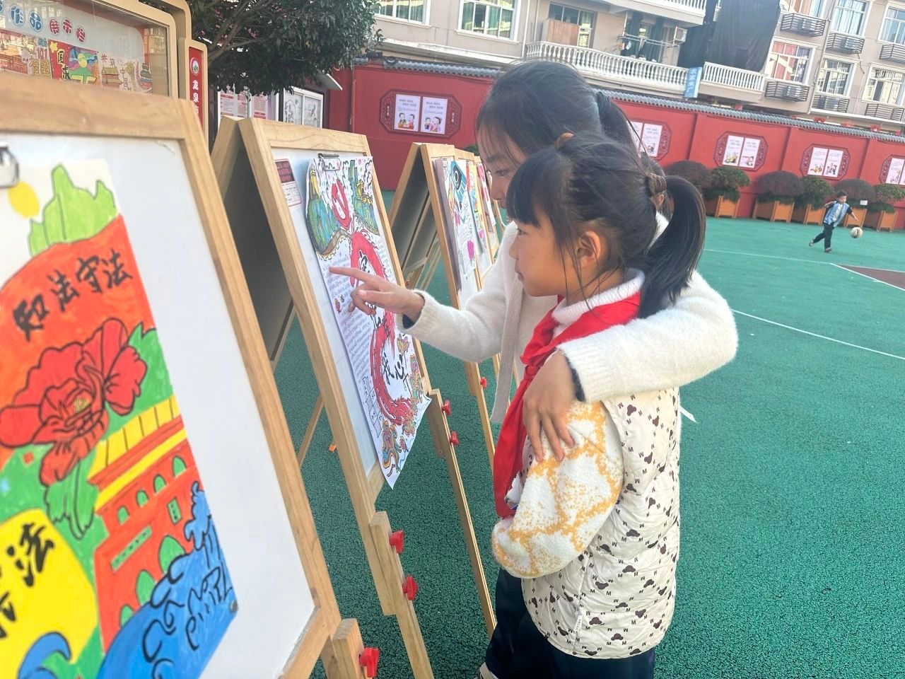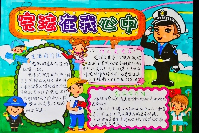 龙泉市塔石小学在电子显示屏、宣传栏上都设置了以学习宪法为主题的宣传语,通过“宪法在我心”绘画、手抄报展示,让同学们更加了解宪法。