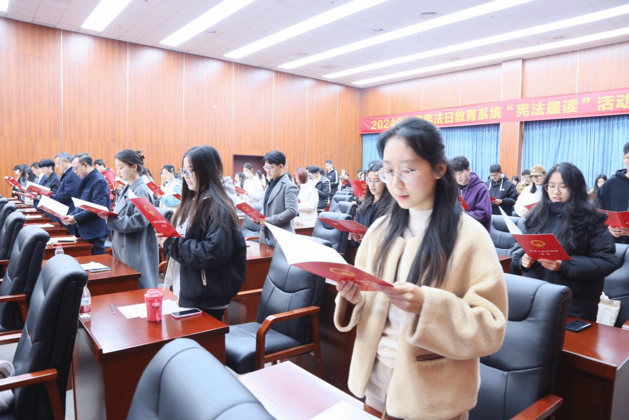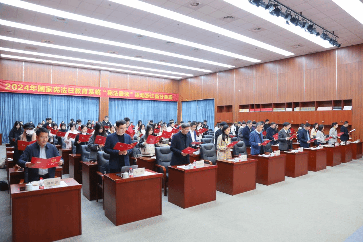 为深入学习贯彻习近平法治思想,弘扬宪法精神,维护宪法权威,12月4日上午,2024年国家宪法日教育系统“宪法晨读”浙江省分会场活动在杭州师范大学仓前校区报告厅内举行。省教育厅、杭州市教育局相关负责人,杭师大分管负责人、各部门负责人和各麻将胡了试玩 学生代表等百余人齐聚一堂,共同参与活动。