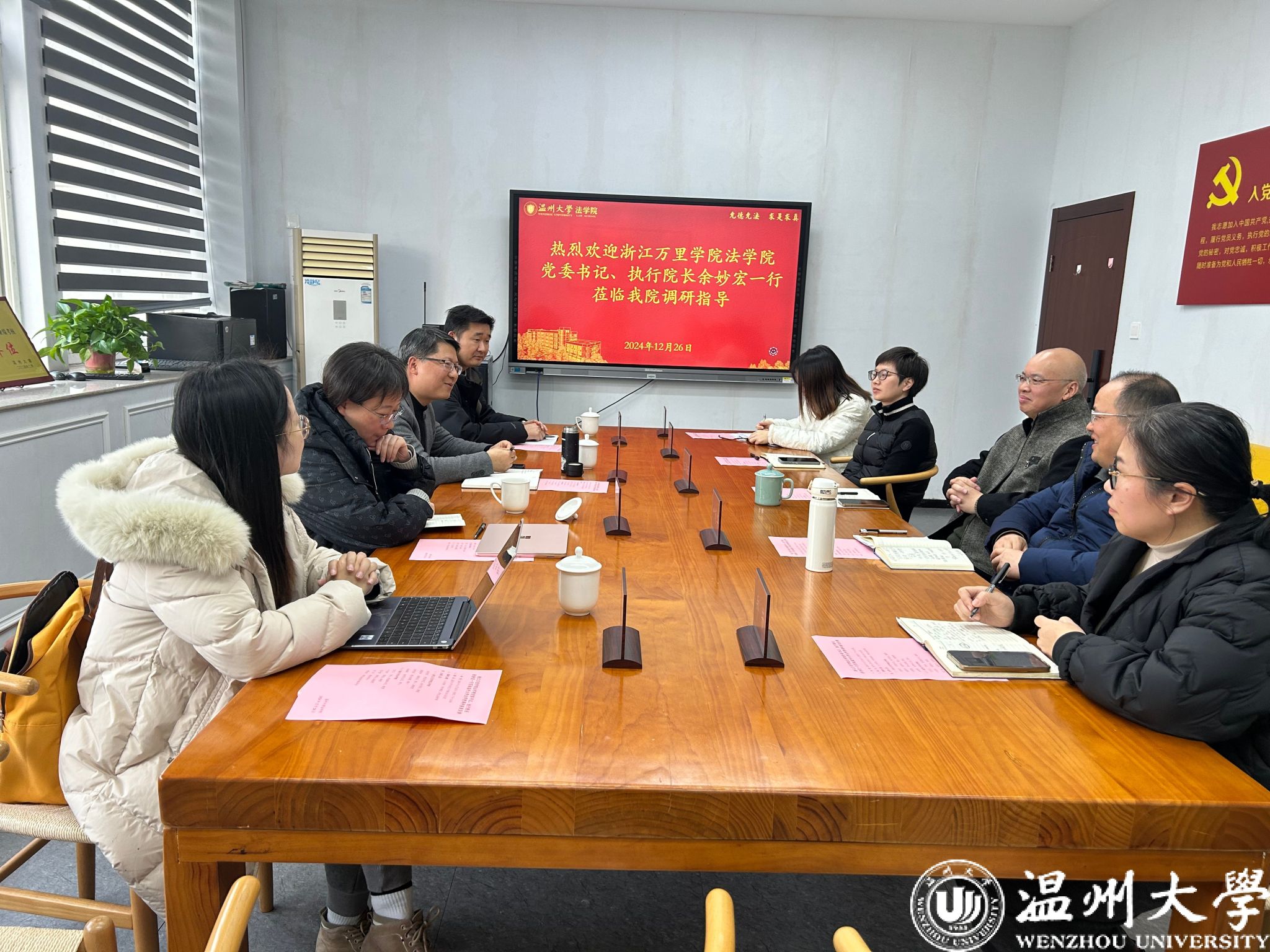12月26日下午,浙江万里麻将胡了试玩 麻将胡了试玩 党委书记、执行院长余妙宏一行就人才培养、学科建设、研究生教育来麻将胡了试玩(中国)官方网站 调研交流。麻将胡了试玩 院长、党委副书记王宗正、副院长叶肖华、副院长周一颜以及相关科室负责人参与座谈交流,座谈会由王宗正主持。