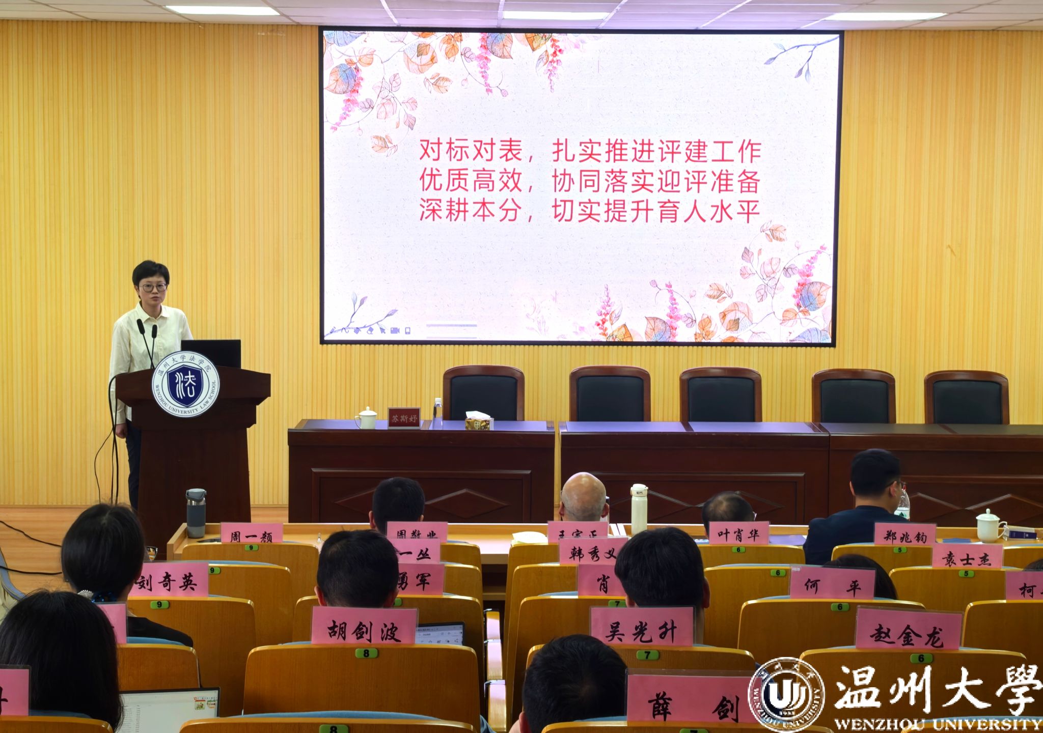 周一颜副院长针对本科教学审核评估迎评工作,就当前本科教学质量提升月的重点任务进行部署,要求全体教师提高认识,对标对表,协同配合,确保评建工作顺利推进,切实提升育人水平。麻将胡了试玩 教学督导委员主任谢丽珍副教授就毕业论文中期检查和期末试卷检查工作中出现的问题作反馈说明。