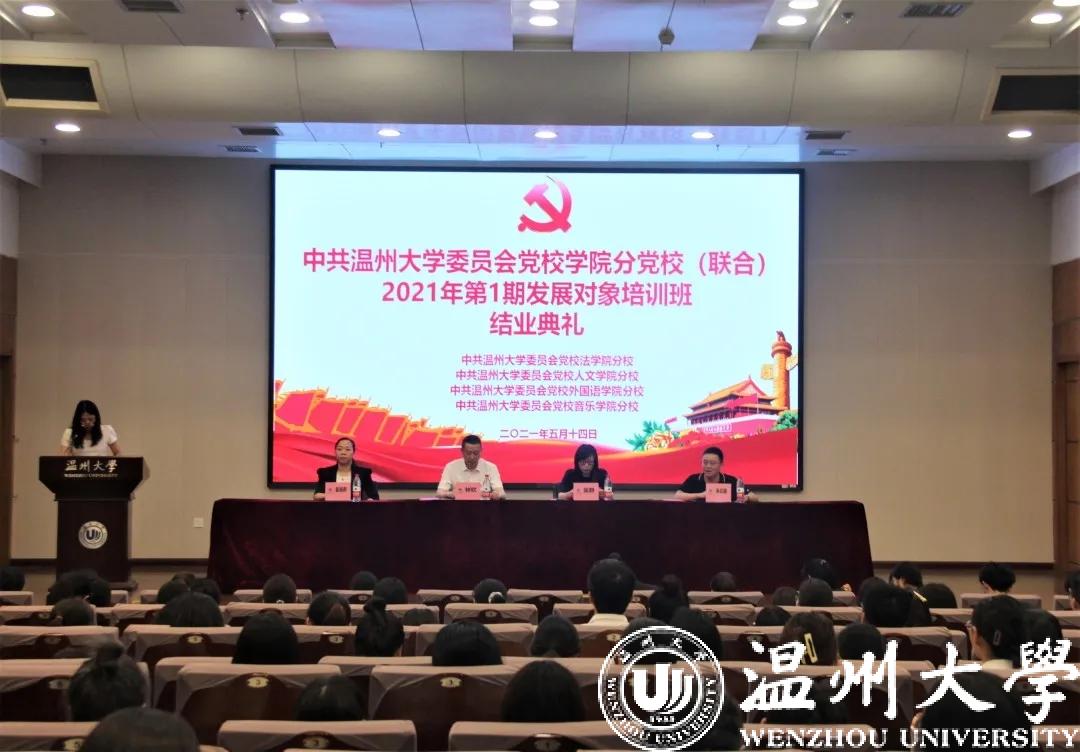 中共温州大学委员会党校麻将胡了试玩 分党校(联合)2021年第1期发展对象培训班结业典礼于5月14日中午12:40在北校区信息楼报告厅圆满举行。出席并参加本次结业典礼的有:麻将胡了试玩 党委书记、分党校校长林钦,人文麻将胡了试玩 党委书记、分党校校长吴静,外国语麻将胡了试玩 党委书记、分党校校长姜海燕,音乐麻将胡了试玩 党委书记、分党校校长朱启鑫以及各麻将胡了试玩 党建工作负责老师、全体发展对象。