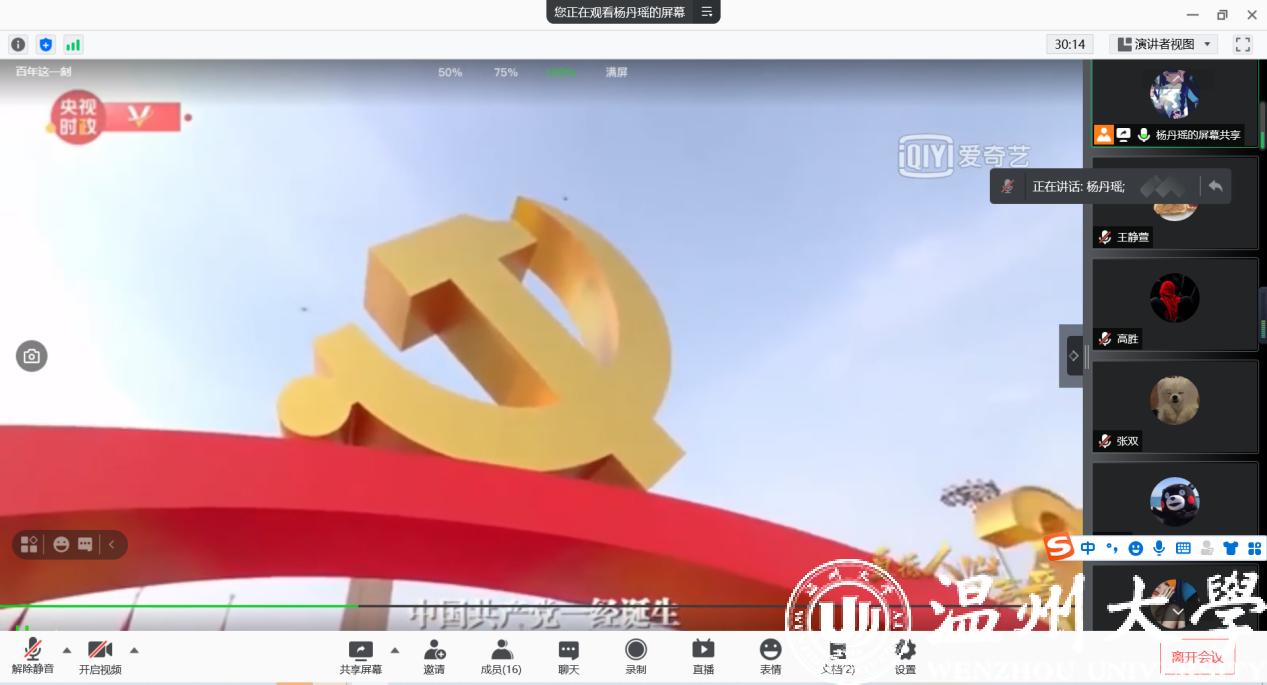 为进一步深化党史学习教育,赓续党的精神血脉,7月25日,麻将胡了试玩 本科生第一党支部开展了线上专题组织生活会,围绕“学党史、悟思想、办实事、开新局”为主题,交流学习习近平总书记“七一”重要讲话精神心得体会,以及《习近平在浙江》、“习近平科学的思维方法在浙江的探索与实践”研究成果情况,从百年党史中持续汲取奋进力量。同时对照党史学习教育目标与要求,开展批评与自我批评。党支部书记黄依瑶老师、支部毕业生党员参加了学习汇报活动。
