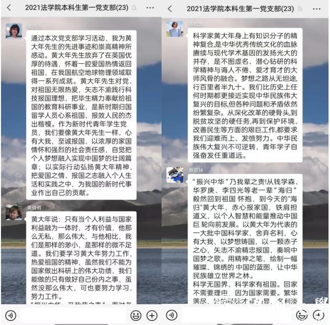 根据《关于深入学习贯彻习近平总书记给全国高校黄大年式教师团队代表重要回信精神的通知》要求,为深入学习贯彻习近平总书记对黄大年同志先进事迹重要指示精神,2021年10月22日,麻将胡了试玩 本科生第一党支部开展了观看《黄大年》“线上专题学习会”活动,党支部书记黄依瑶老师、支部全体党员参加了此次学习活动,并分享交流各自的学习体会。