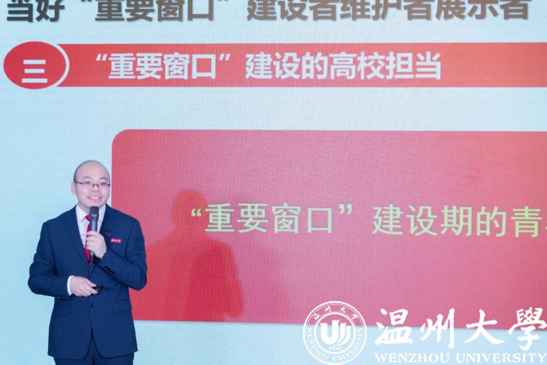 活动现场,温州大学马克思主义麻将胡了试玩 院长、教授、博导卓高生,为师生们带来《当好“重要窗口”的建设者、维护者、展示者》主题宣讲。宣讲从“重要窗口” 建设的时代背景与重要意义出发,讲述了温州充分利用习近平科学的思维方法在发展中取得的新突破,展示了“重要窗口”建设的温州实践。