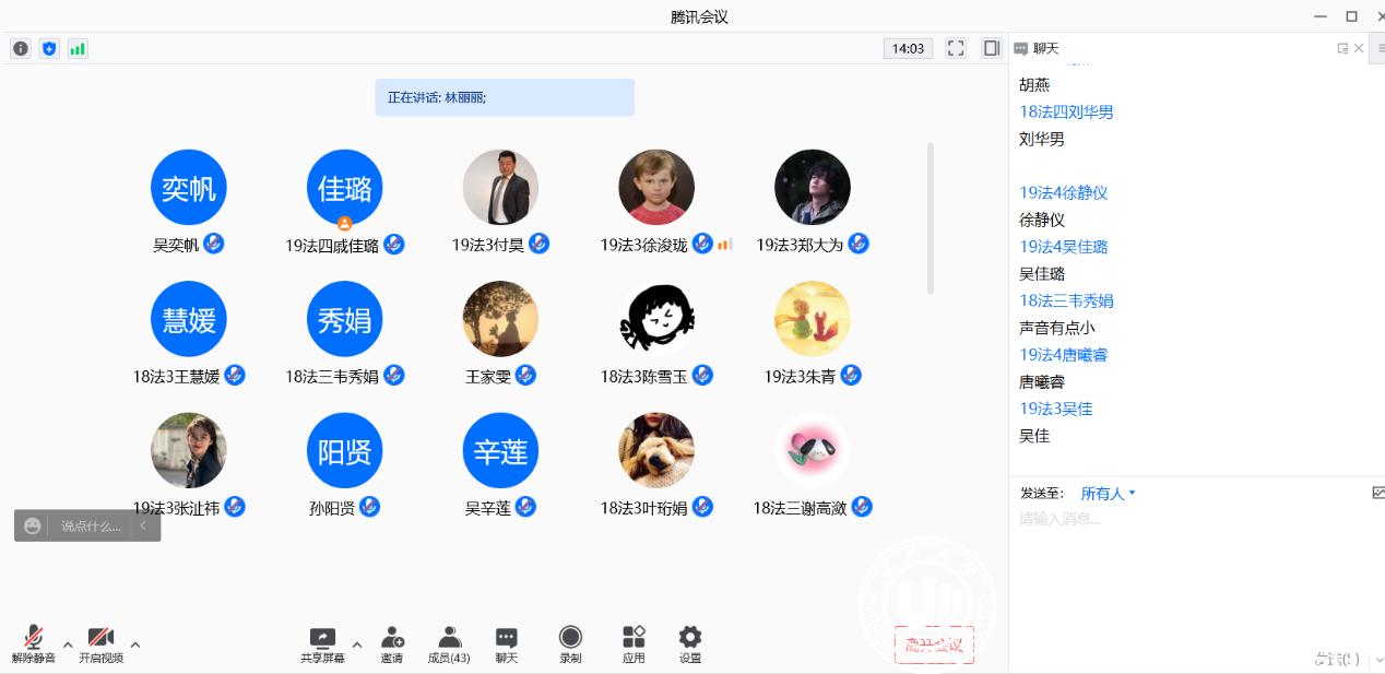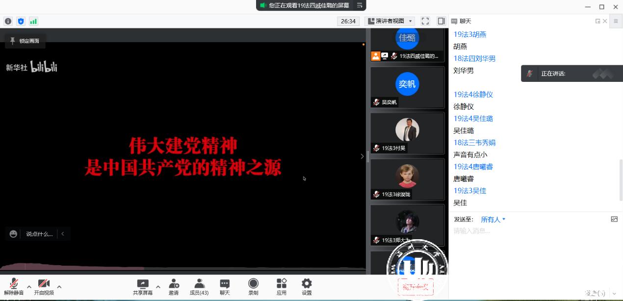 为深入学习十九届六中全会精神,进一步团结凝聚学生党员的党性修养,坚定理想信念,砥砺党员先锋模范底色,2021年12月16日下午19点30分,麻将胡了试玩(中国)官方网站 本科生第三党支部在腾讯会议召开了全体党员支部大会,开展“学全会精神,当为民先锋”主题学习活动。本次会议由林丽丽老师主持,应到党员41名,实到党员41名。