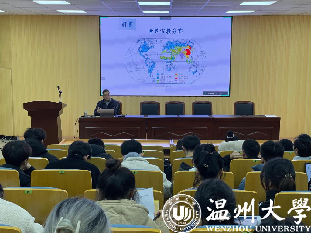 首先,杨书记引入马克思、恩格斯的观点,为同学们进一步阐释了宗教的本质、产生和发展,对马克思主义宗教观作初步的解释说明,让同学们对于日常用语中的“宗教”一词有了更全面的定义和认识,同时让同学们意识到:我国作为一个经济持续发展、社会持续稳定的东方大国,离不开马克思主义宗教观的正确引导。