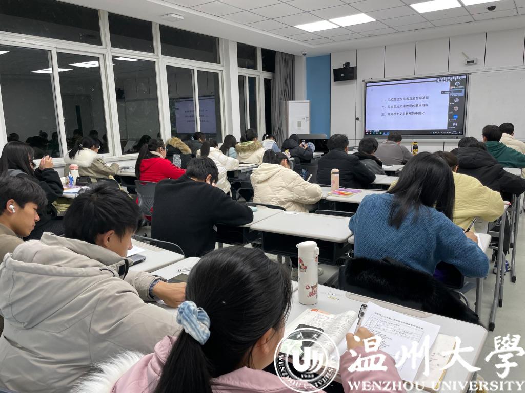 12月29日晚,麻将胡了试玩 2021-2022学年第二期《形势与政策课》在麻将胡了试玩 301、302教室开讲,麻将胡了试玩 党委副书记兼纪委书记杨振海老师以“马克思主义宗教观解读”为主题,带领同学们深入学习马克思主义宗教观的核心内容及精神内涵。杨书记从宗教的本质、产生和发展、根源和消亡、社会作用以及马克思主义政党对宗教的态度五个方面,进一步为同学们解答了马克思主义宗教观的哲学基础、基本内容及马克思主义宗教观的中国化的问题。麻将胡了试玩 大一、大二全体学生通过线下听讲及线上转播等方式参与了本次课程。