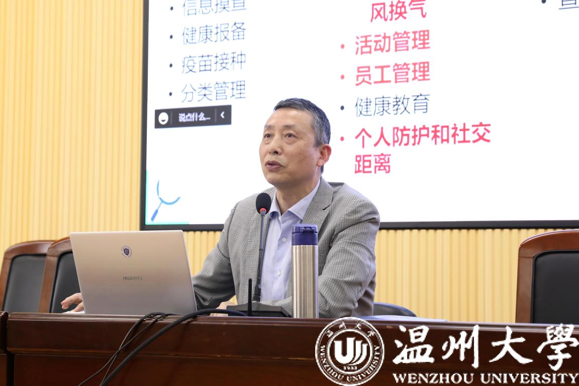 再次,林书记从联防联控机制、常态化防控、应急处置等几个方面阐述了温州大学当下的疫情防控政策,带领同学们理解学校疫情防控的要点,提出了“功在平时、早快准严”的观点,切实做好防控措施,持续筑牢疫情防控安全防线。