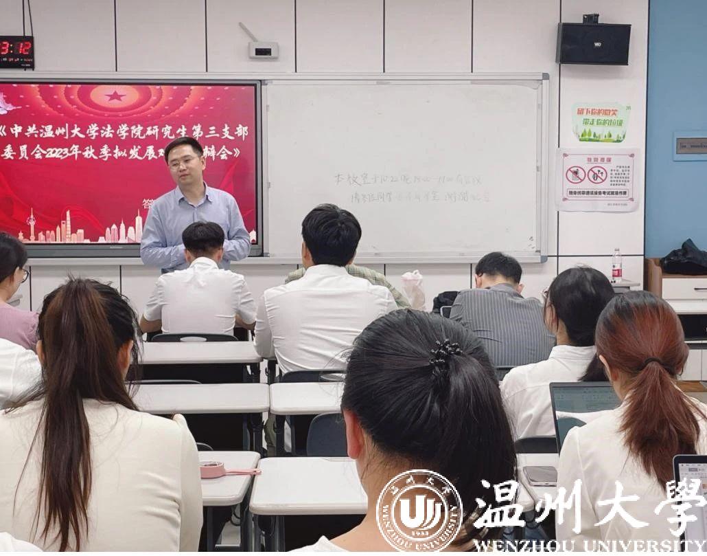 为规范学生党员发展工作,确保党员发展质量,加强学生党支部队伍的建设,提高整体党员素质和服务意识,10月22日晚,麻将胡了试玩 研究生第三党支部在208教室开展了拟发展对象答辩会。白昌科老师、党支部全体党员(请假1人,线上参会3人)以及7位拟发展对象参加了此次大会。答辩会后,麻将胡了试玩 研究生第三党支部开展了“学讲话、悟精神、促发展、惠民生”主题党日活动,重点学习宣传了习近平总书记考察浙江时的重要讲话。