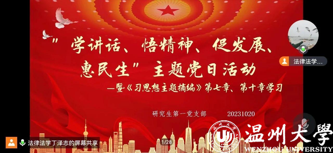 中共麻将胡了试玩(中国)官方网站 研究生第一支部委员会于2023年10月20日在支部书记、副书记的带领下开展了“学讲话、悟精神、促发展、惠民生”主题党日活动。