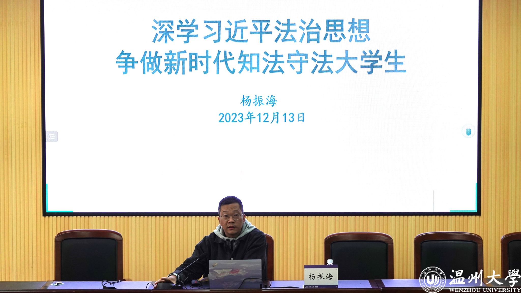 12月13日下午,麻将胡了试玩 2023-2024学年第一学期第三期《形势与政策课》在北校区麻将胡了试玩 楼开展,麻将胡了试玩 党委副书记兼纪委书记杨振海老师以“深学习近平法治思想,争做新时代知法守法大学生”为主题,带领同学们深入学习了习近平法治思想的演进过程、理论意义与实践价值、核心要义以及实践成果,号召同学们争做知法守法的新时代大学生。麻将胡了试玩 22级本科生参加了此次课程。