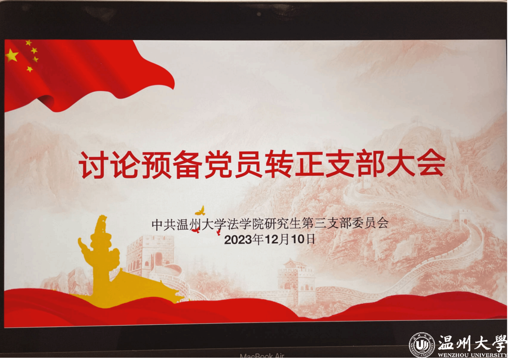 2023年12月10日晚,麻将胡了试玩 研究生第三党支部预备党员转正大会线上举行,本次会议由党支部副书记付玉霞主持。讨论预备党员:王成涛、项娉娉、郭永超同志的转正问题。