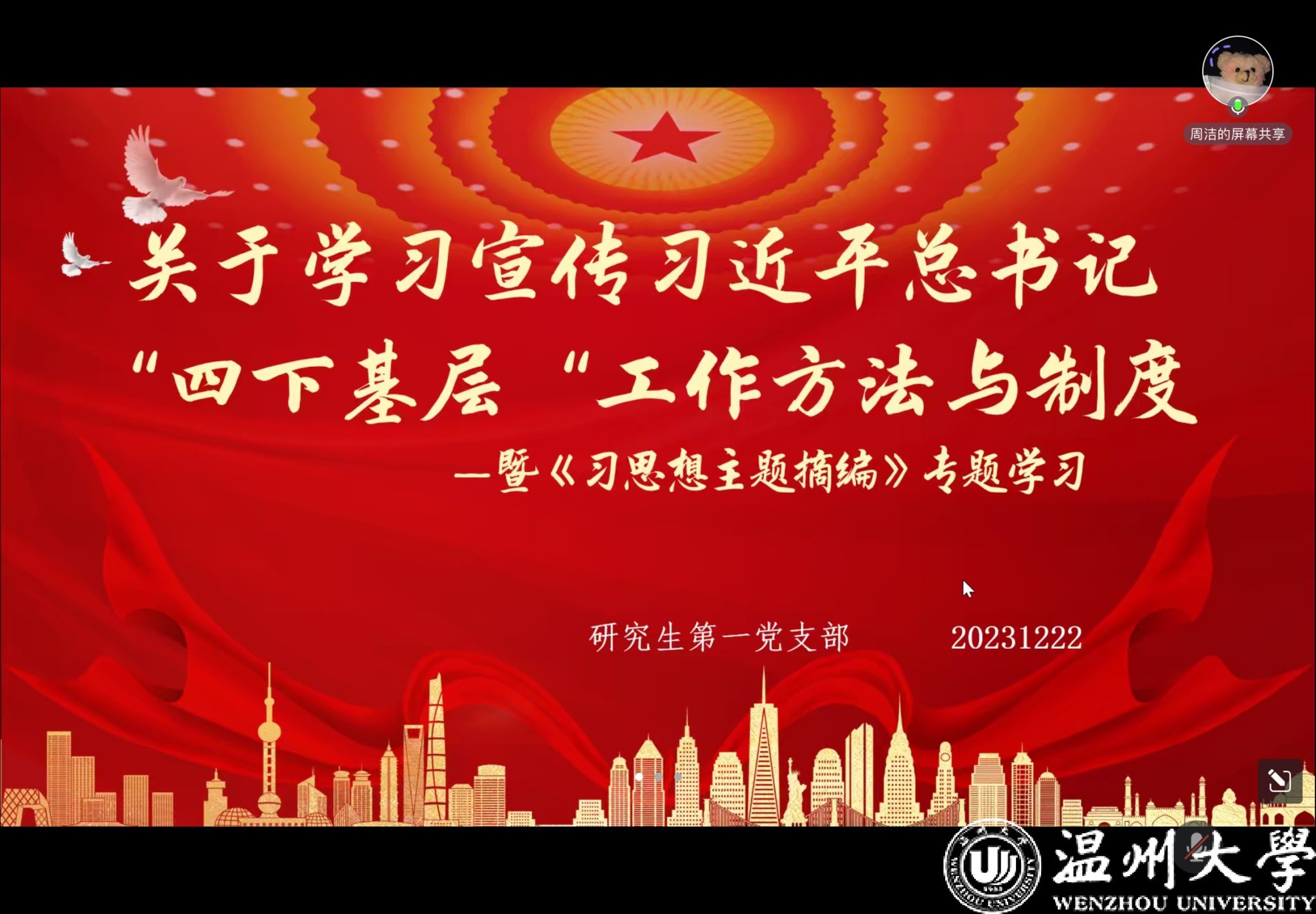 麻将胡了试玩 研究生第一党支部于2023年12月22日召开了习近平法治思想专题学习会,本次学习首先由党支部副书记周洁同志带领大家学习关于宣传习近平总书记“四下基层”工作方法与制度;其次,由支部党员带领大家学习了“铸就社会主义文化新辉煌”以及“坚持在发展中保障和改善民生”。