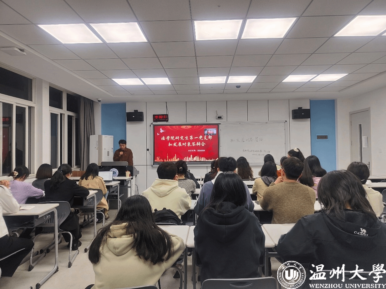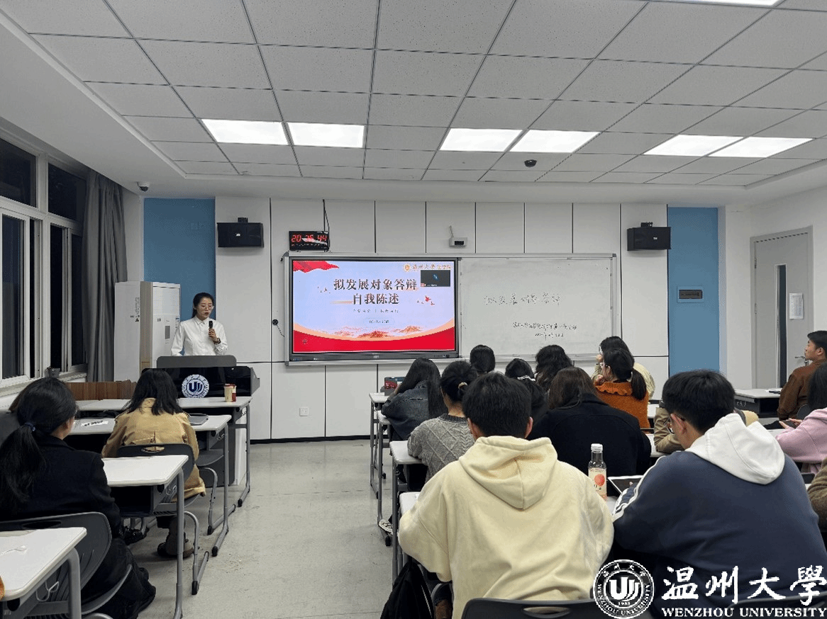 为规范学生党员发展工作,确保党员发展质量,加强学生党支部队伍的建设,提高整体党员素质和服务意识,3月28日晚,研究生第一党支部在210教室开展了拟发展对象答辩会。本支部共28名党员(应到28人,实到28人,其中线上参会8人)以及10位拟发展对象参加了此次大会。此次拟发展对象答辩会主要分为四个议程: