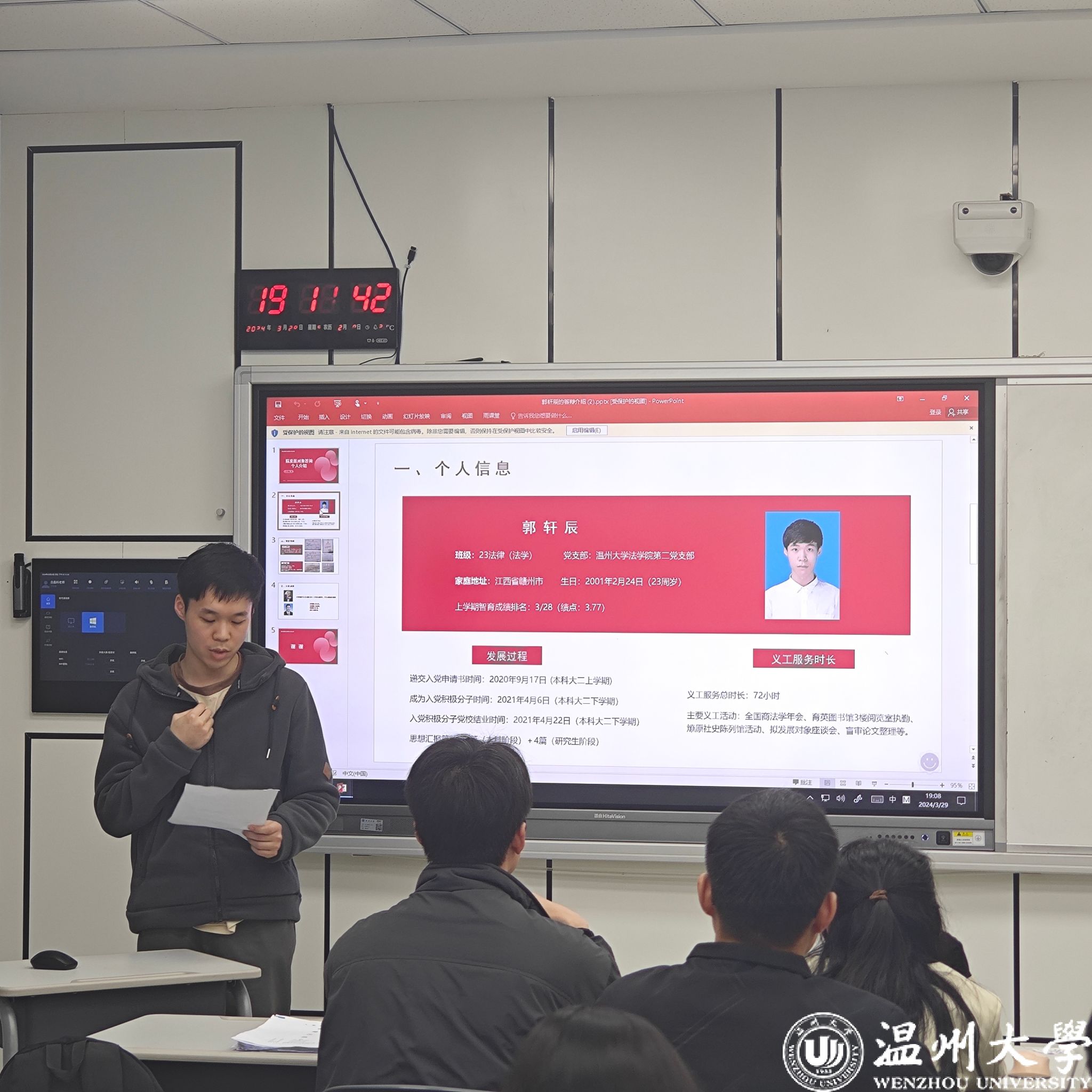 会议第二项议程:拟发展对象进行个人汇报展示。2位拟发展对象分别从入党动机、思想学习、学习工作、志愿服务等方面进行了充分的自我介绍。