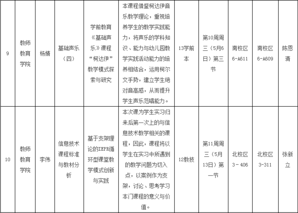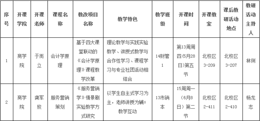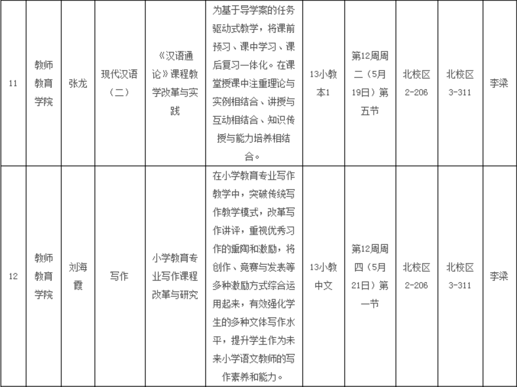 温州大学各麻将胡了试玩 教改示范课安排汇总表(按麻将胡了试玩 )