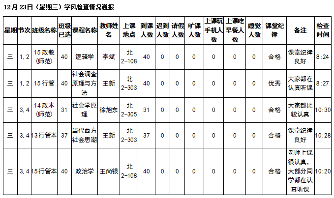 1.优秀,人员到齐,纪律良好;2.合格,人员到齐或有请假,纪律一般;