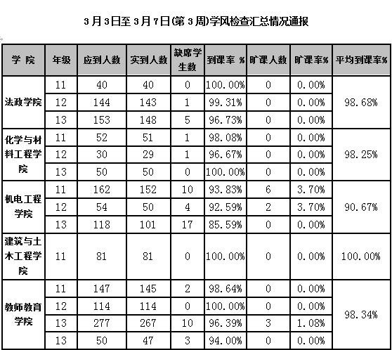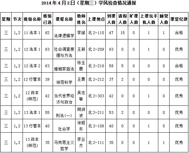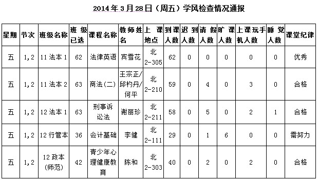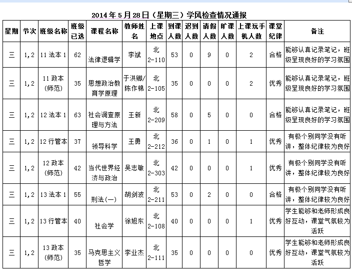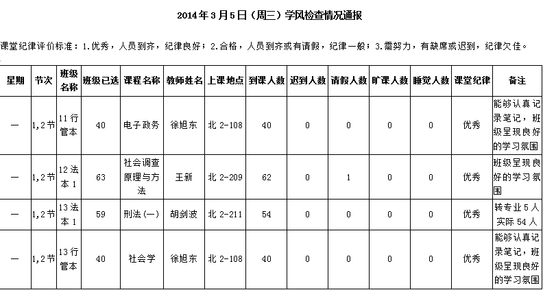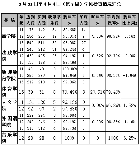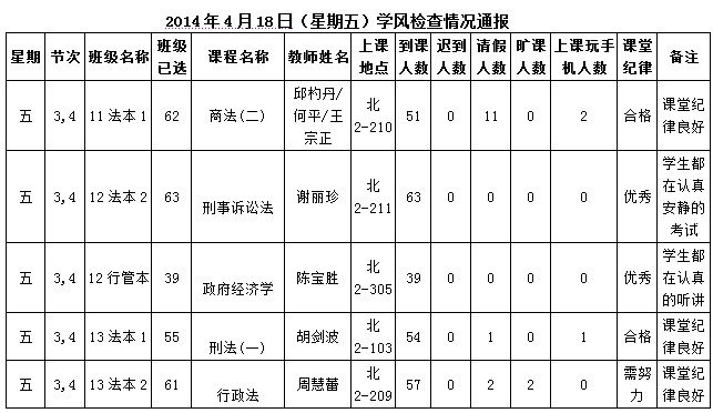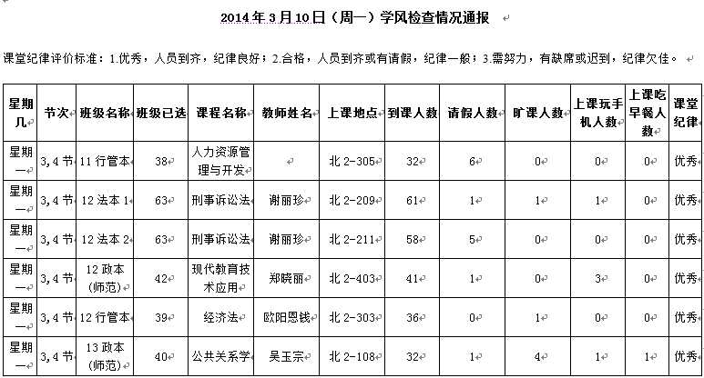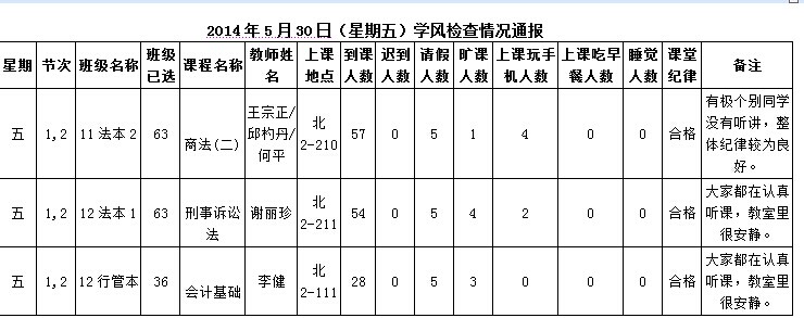 学生处每天派出人员不定时检查学生出勤,并将结果公布