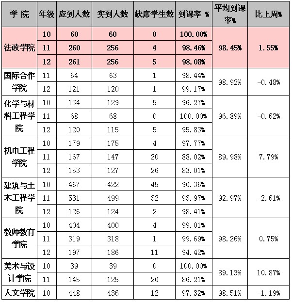 3月25日—3月29日全校学风检查情况汇总