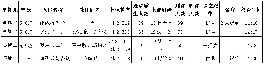 2013年5月14日(周二)学风检查情况通报