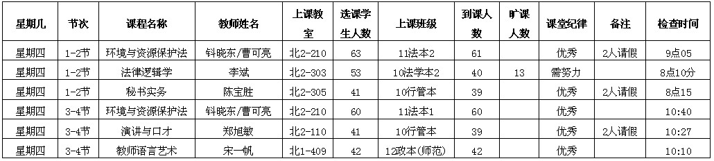 2013年4月11日(周四)学风检查情况通报
