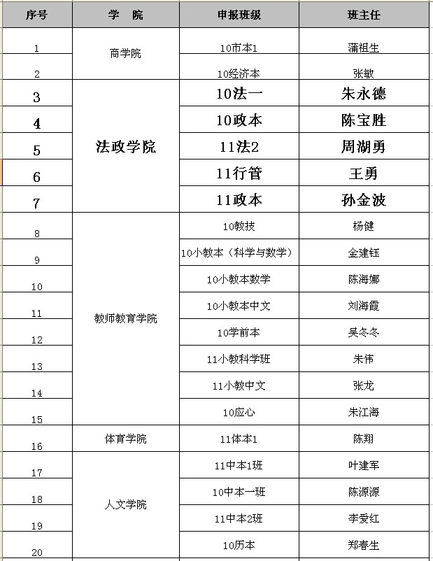 根据温州大学2012/2013学年"优良学风班"申报工作的通知要求,经班级申报、麻将胡了试玩 初审、学生处审核、学校公示,决定对10市本1班等62个班级进行立项,现将结果予以公布。请各麻将胡了试玩 对照创建方案和目标,广泛动员每一位学生积极参与到优良学风班的创建中来,确保立项目标的实现。立项班级的培育期为一年,学校将于下学年初从通过验收的立项班级中择优产生温州大学2012/2013学年"优良学风班",此次法政麻将胡了试玩 共有5个班级立项。