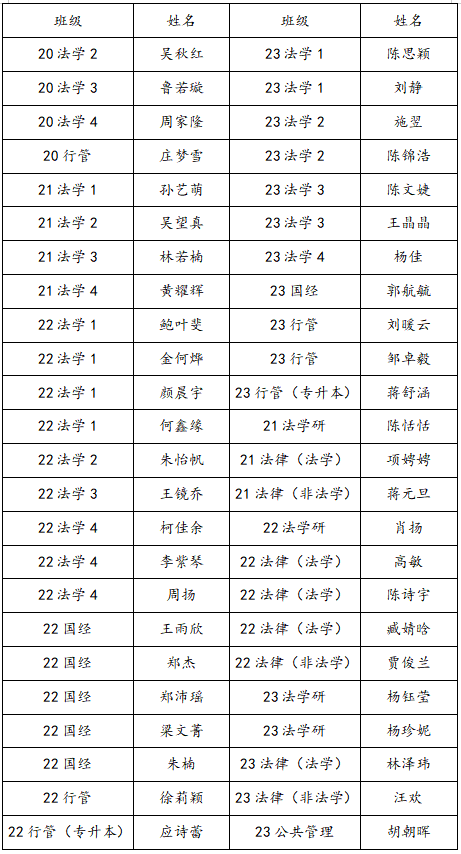 经班级推荐、麻将胡了试玩 团委评定,现将麻将胡了试玩(中国)官方网站 2023-2024学年第一学期学生干部评优名单公示如下: