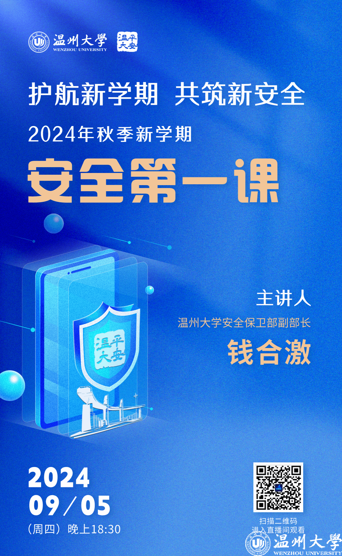 (一)集中收看《安全第一课》,请各单位组织师生员工通过扫描海报中的二维码或电脑端网页链接进入在线直播课堂。//live.avalive.cn/pc/#/livePlay/8080808190d0bdac0191b0b7fe441b9e(电脑端观看地址)